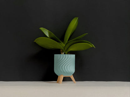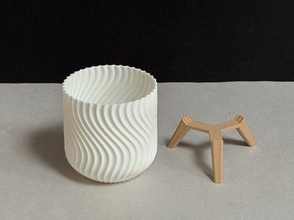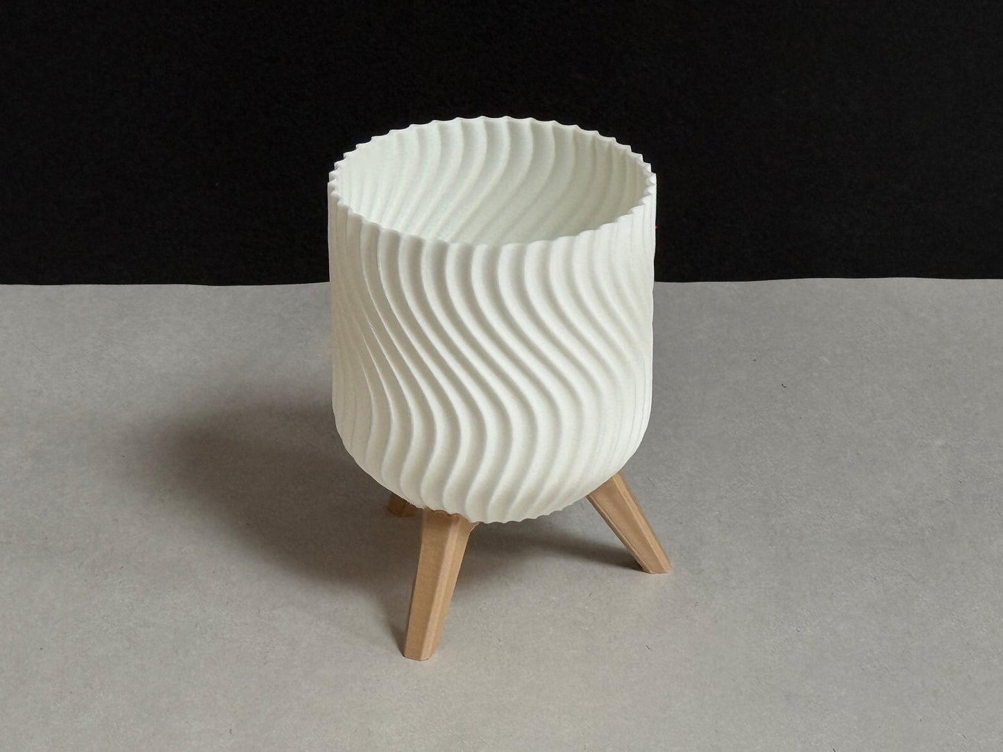 Dieser moderne 3D-gedruckte Blumentopf verleiht jedem Raum eine besondere Note. Perfekt für Zimmerpflanzen, Sukkulenten oder Kräuter – ein stilvoller Hingucker auf dem Tisch, Regal oder Fensterbrett. Im Set enthalten ist ein dreibeiniger Standfuss, um den Blumentopf noch eleganter in Szene zu setzen.