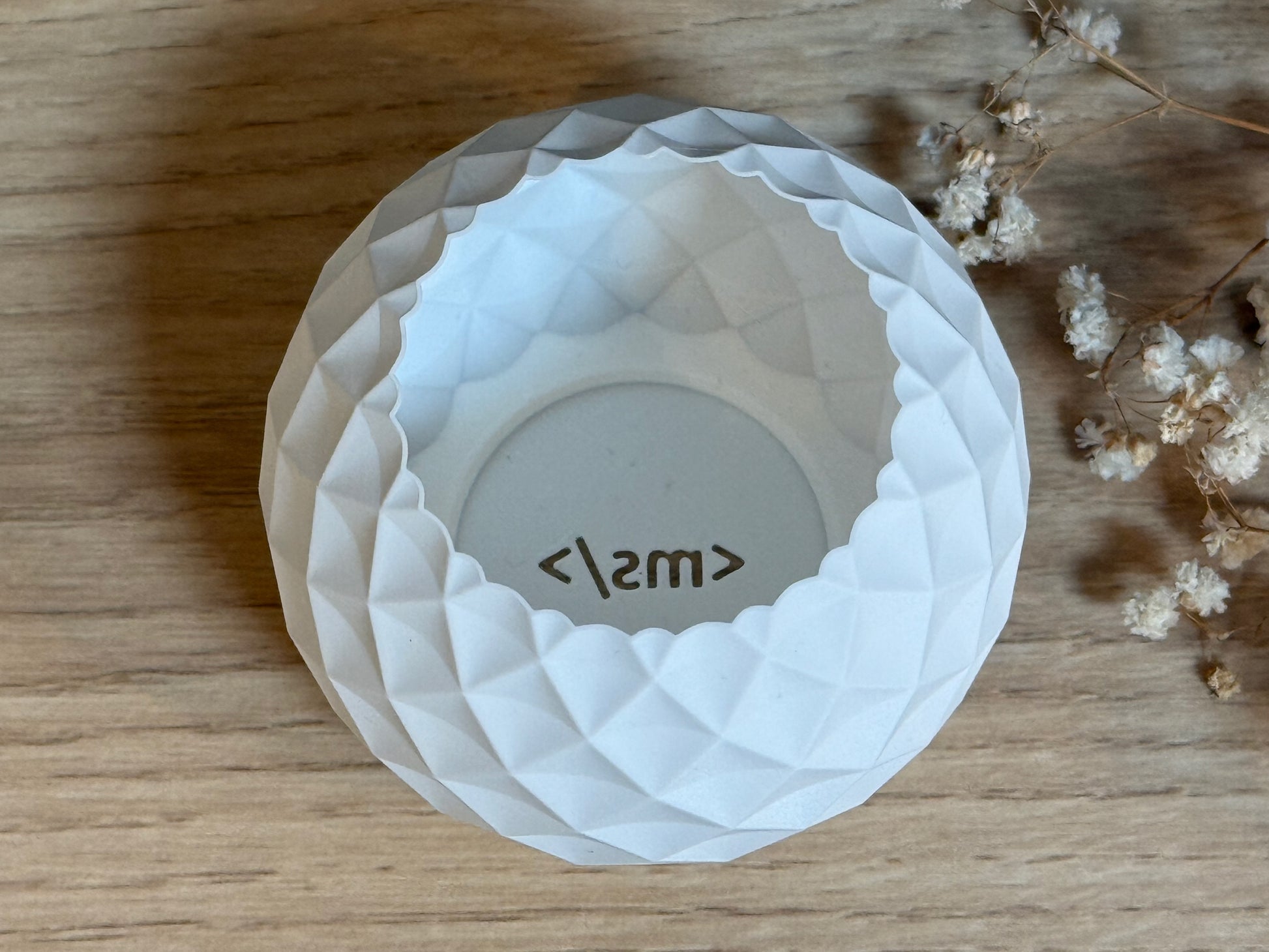 Der Teelichthalter wird aus hochwertigem PLA (Polylactid) gefertigt – einem umweltfreundlichen Biokunststoff, der aus Maisstärke gewonnen wird. PLA ist nicht nur langlebig, sondern auch biologisch abbaubar unter industriellen Bedingungen.