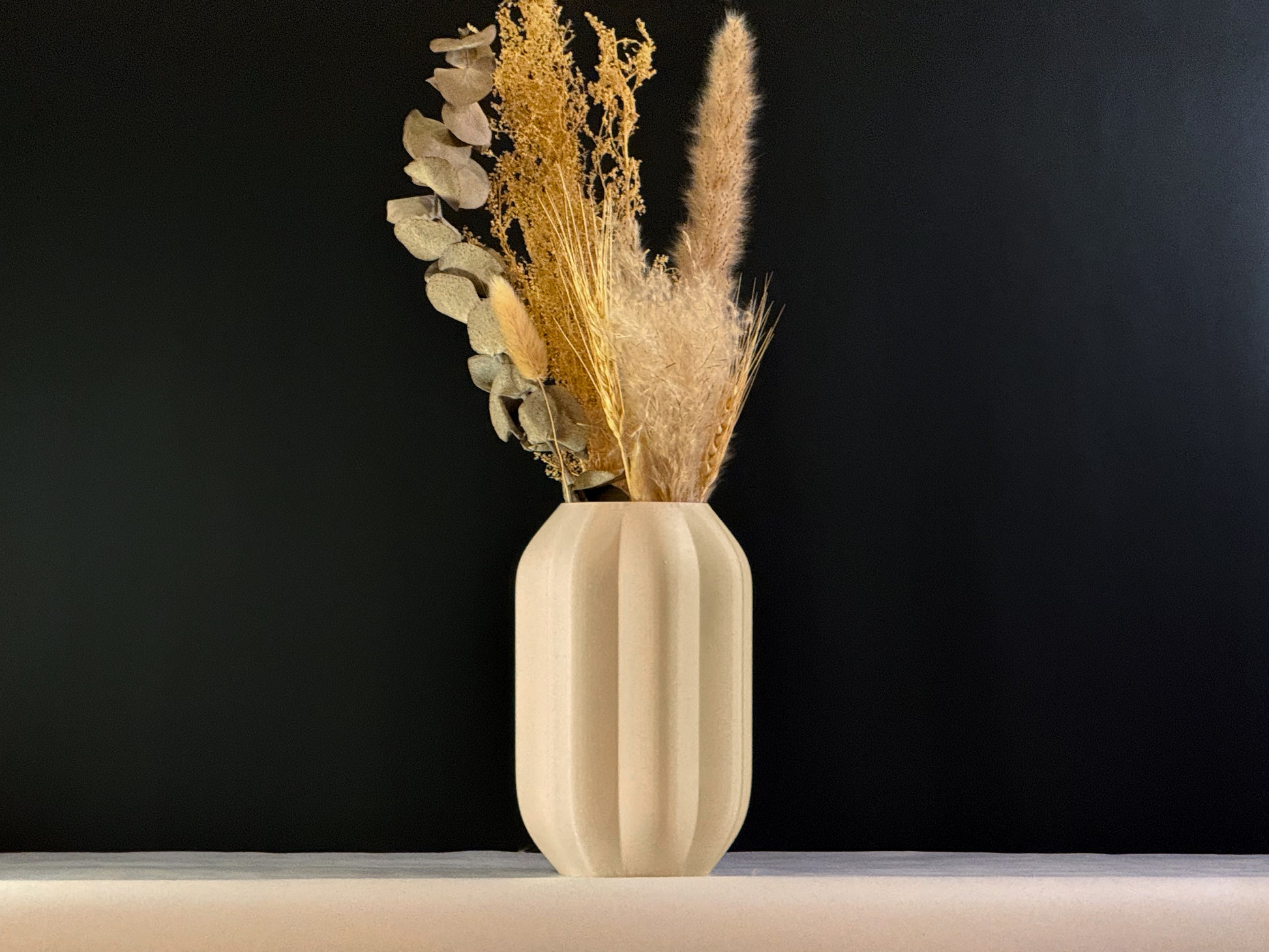Die Vase wird aus hochwertigem PLA (Polylactid) gefertigt – einem umweltfreundlichen Biokunststoff, der aus Maisstärke gewonnen wird. PLA ist nicht nur langlebig, sondern auch biologisch abbaubar unter industriellen Bedingungen.